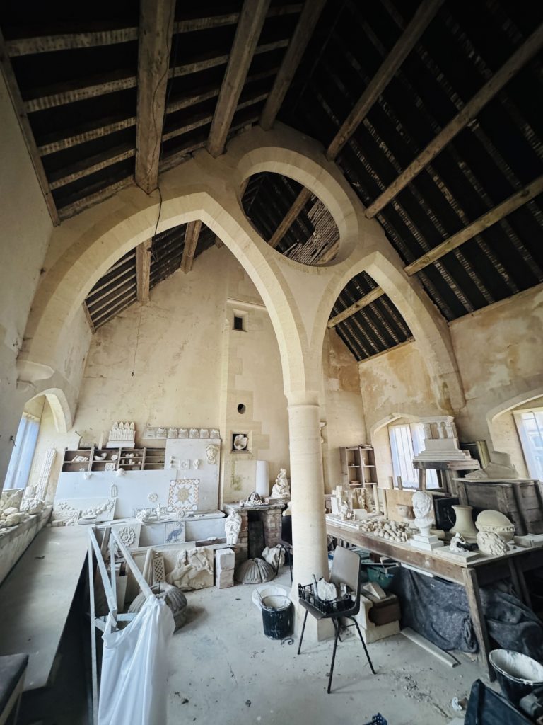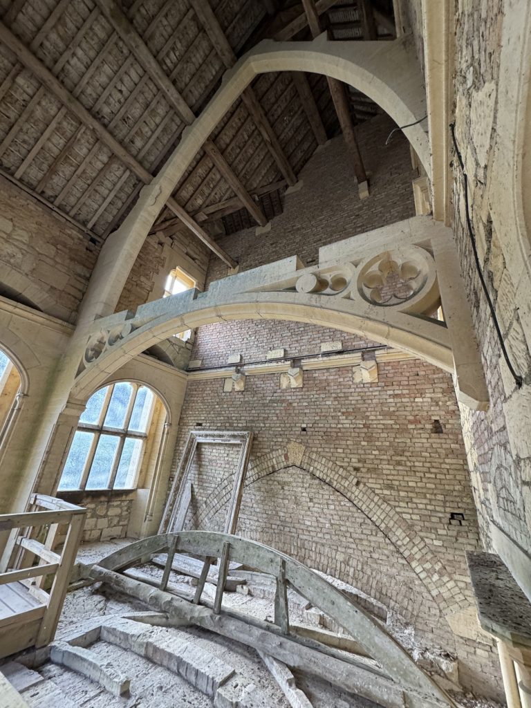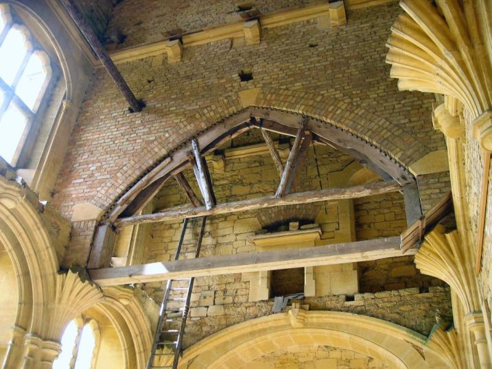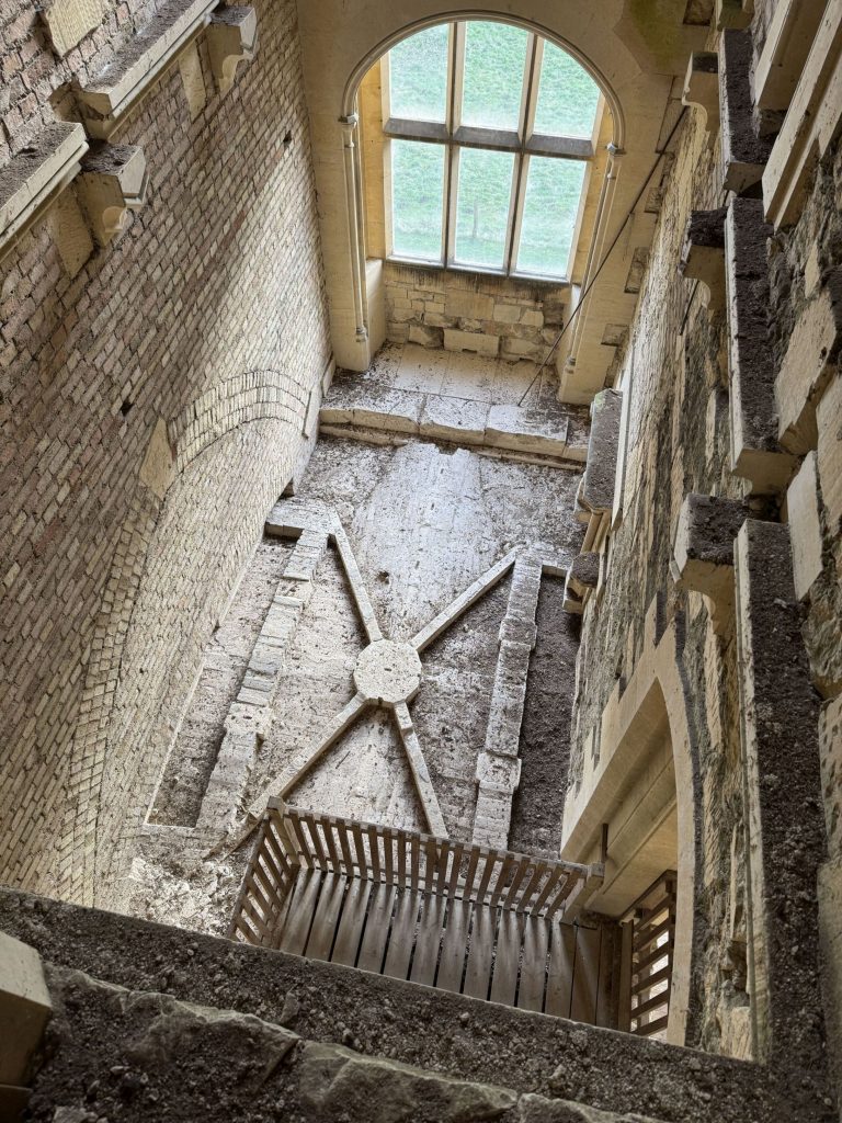 Woodchester Mansion. Grade I Victorian Gothic house in the cotswolds which has remained unfinished since the building started around 1857. Open to visitors who are able to see how traditional mass masonry structures were constructed in the past.